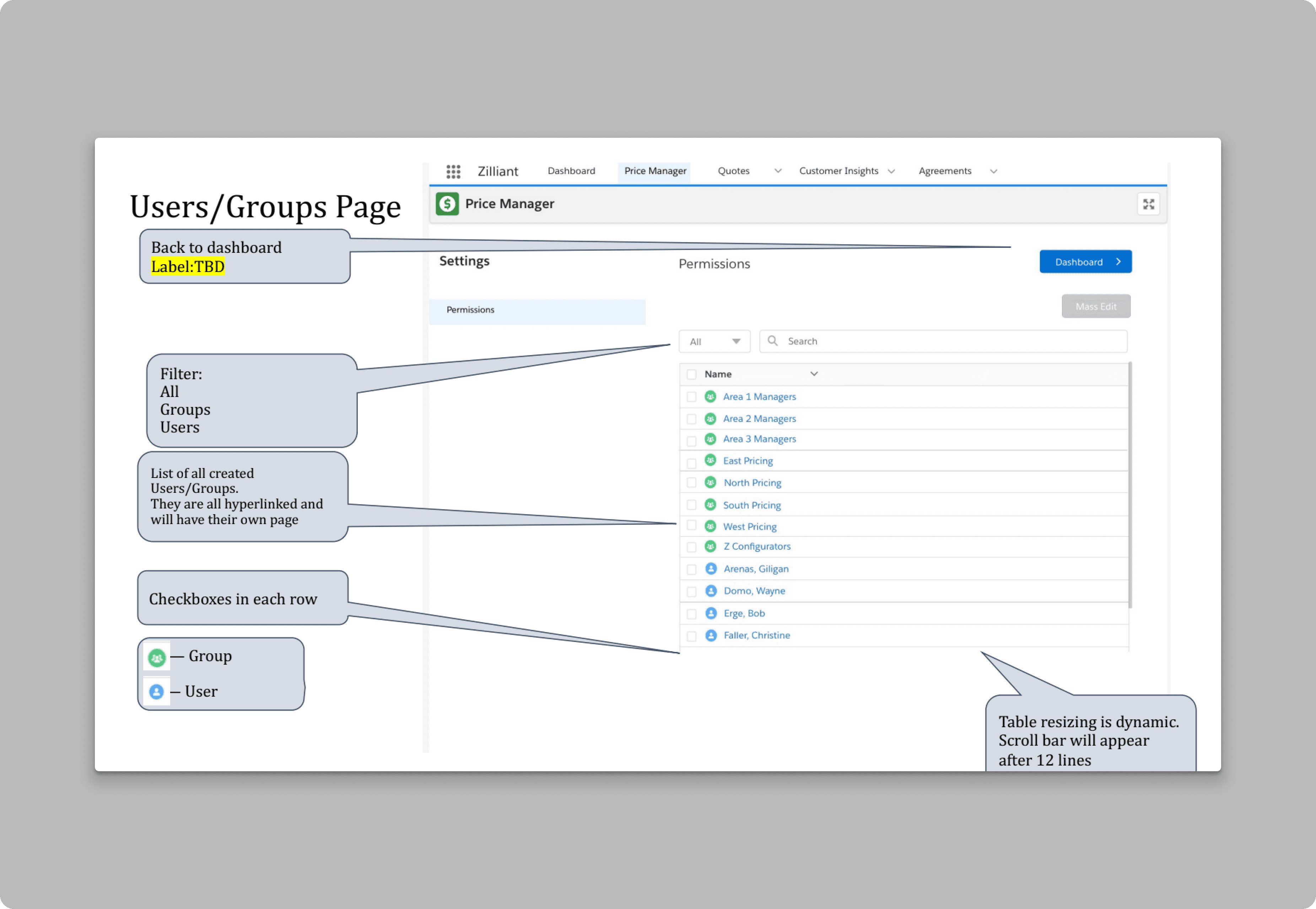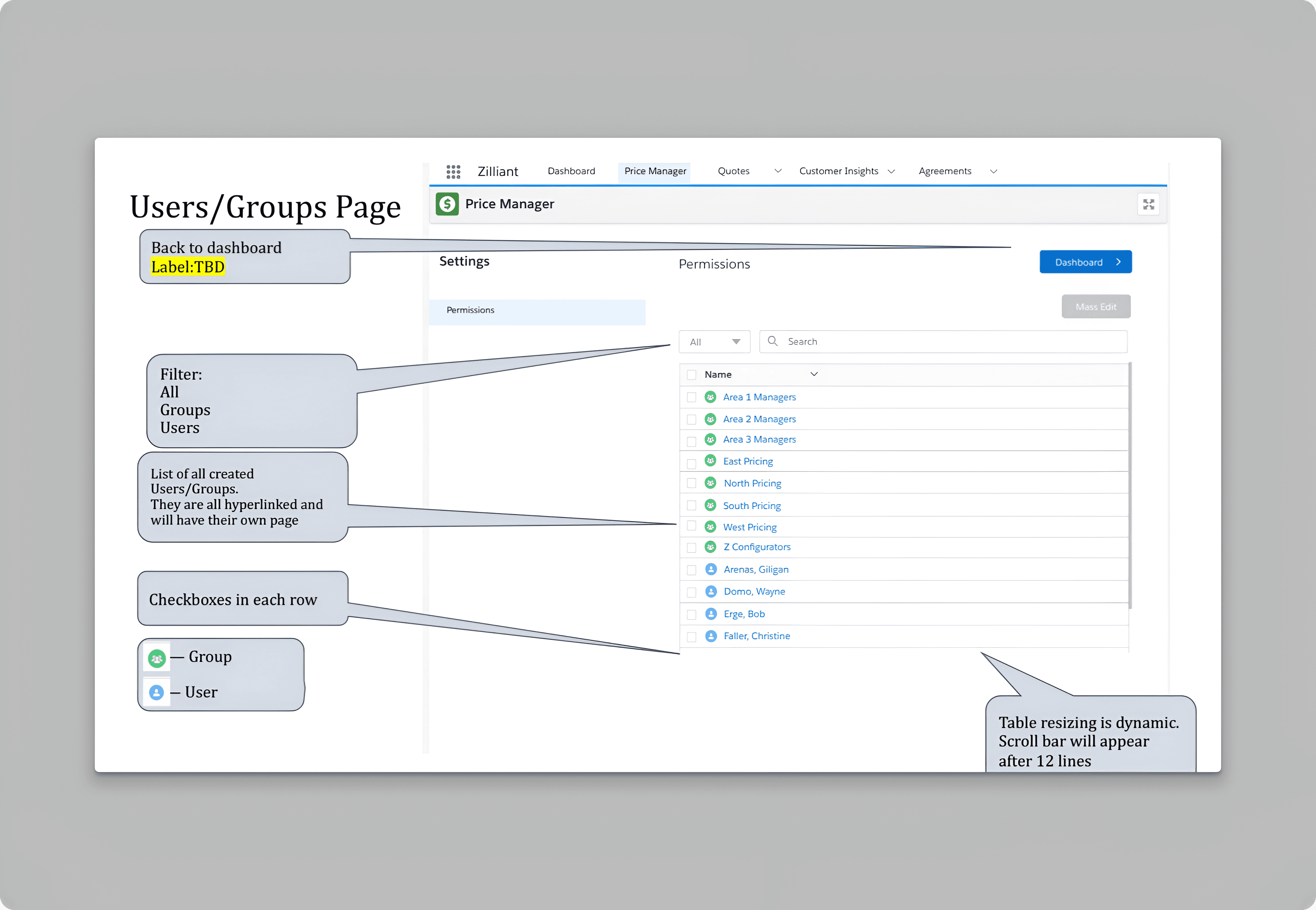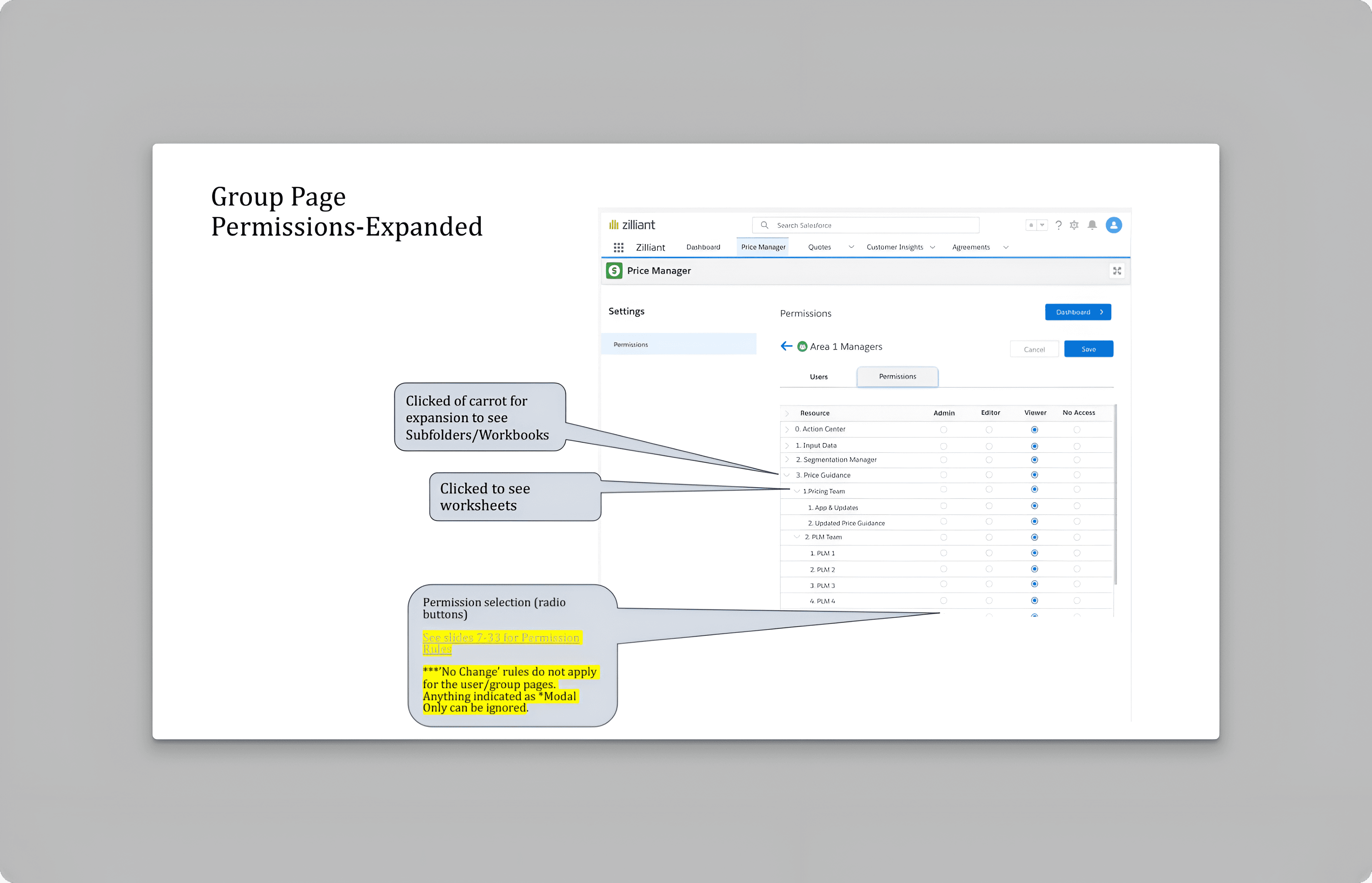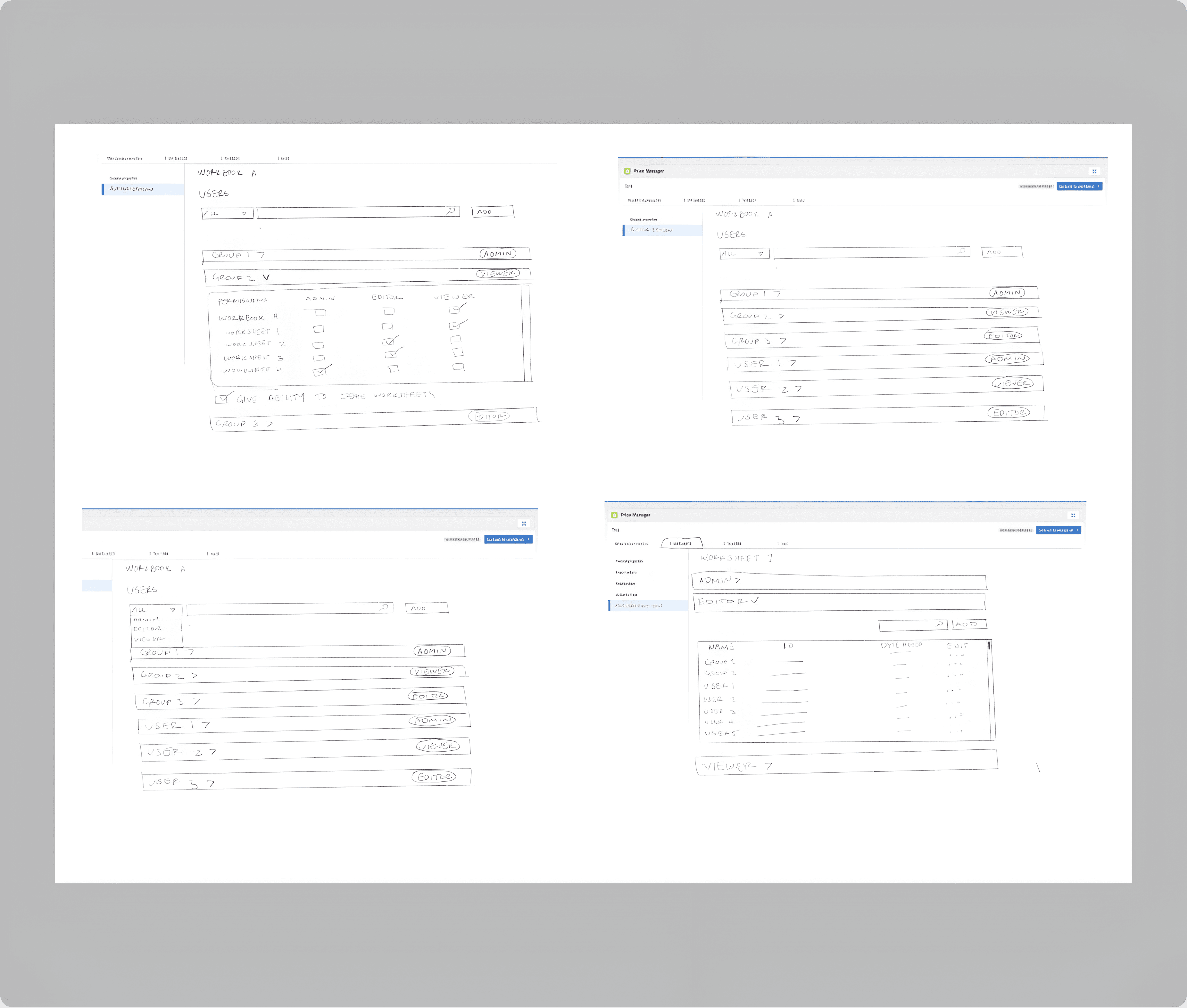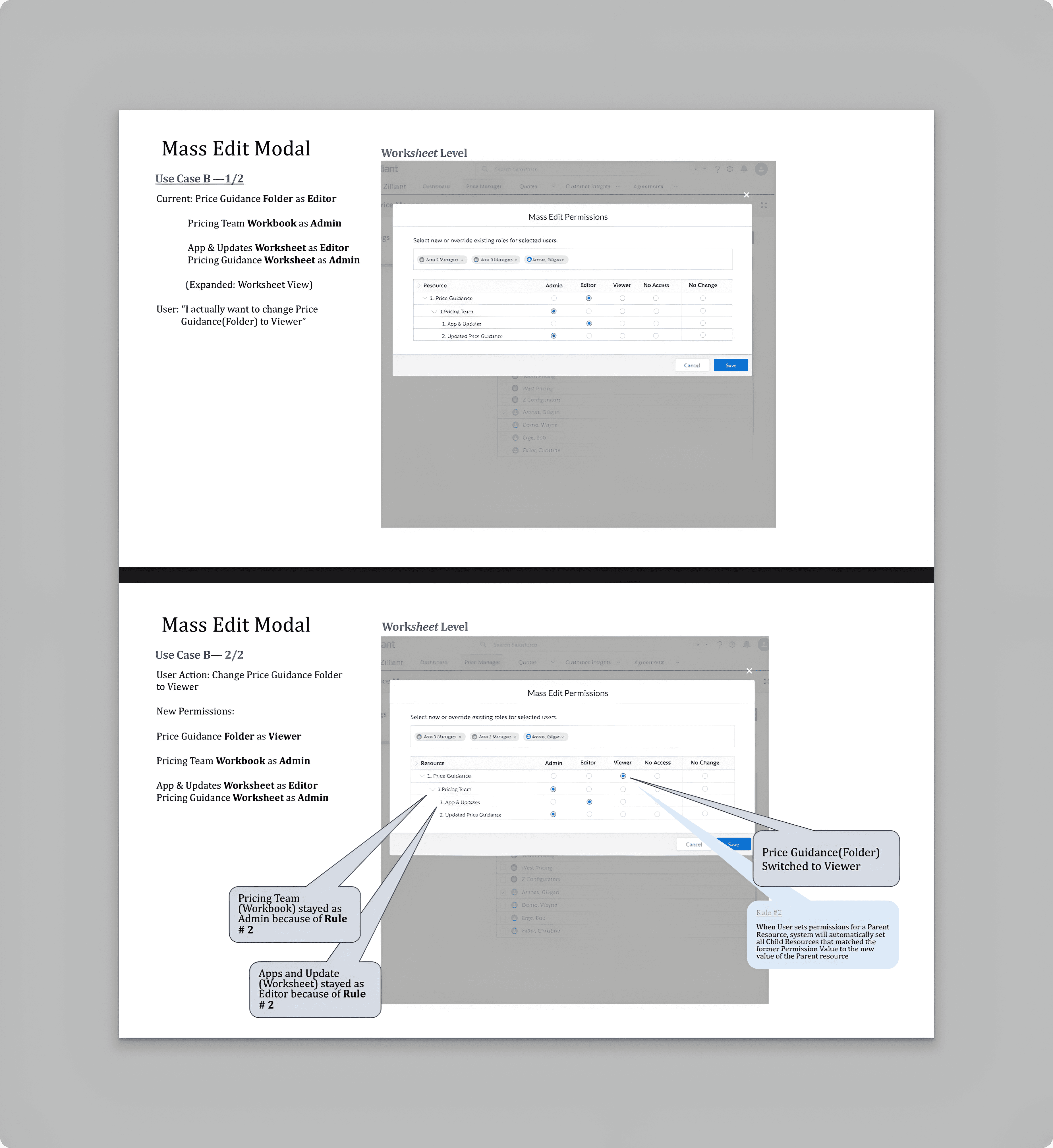 Configurator and Pricing Personas needed an interface within Price Manager to manage individual and group permissions at folder, workbook, and worksheet levels. This functionality was critical to empowering users to control access without requiring external assistance or coding expertise.